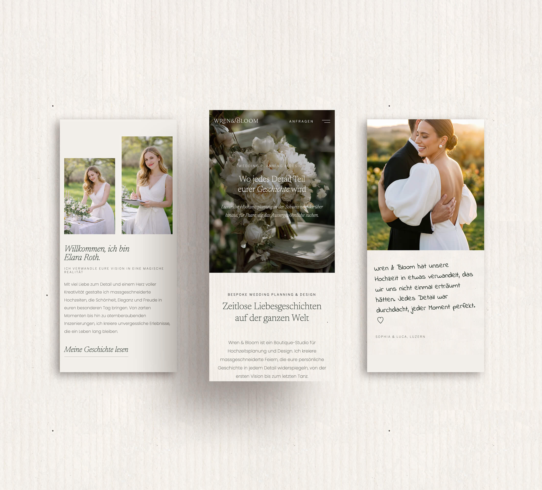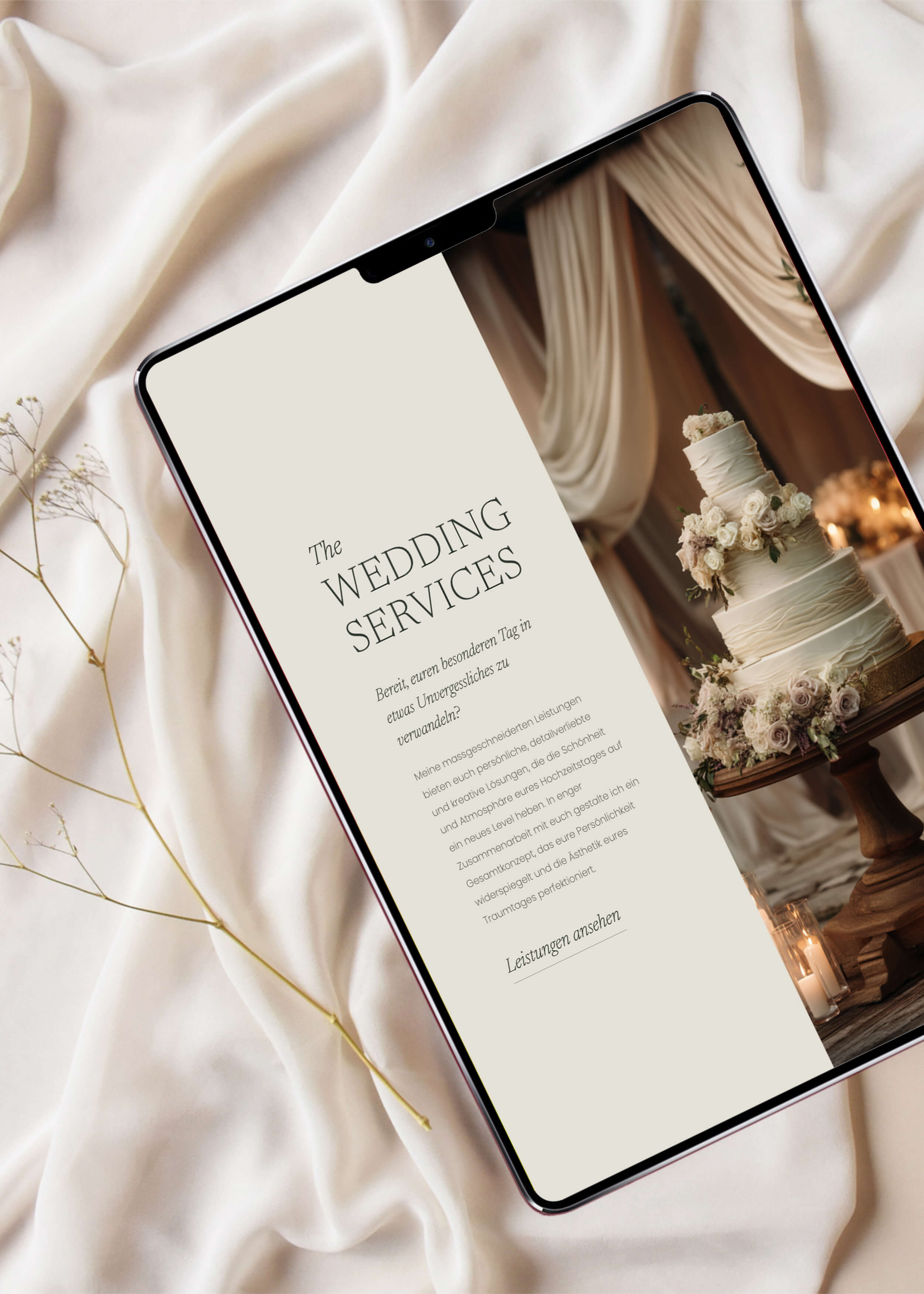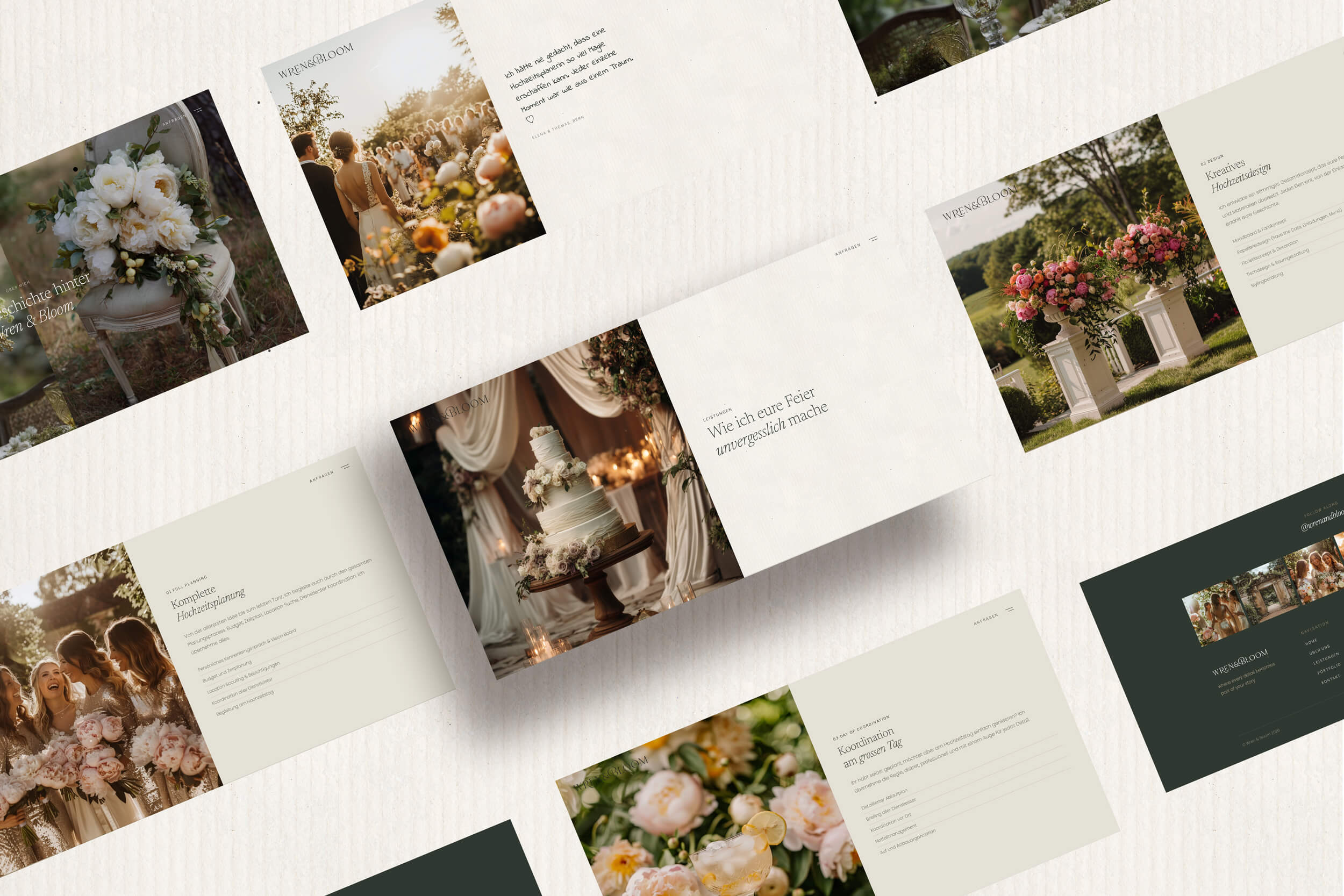 Ein Konzeptprojekt für eine fiktive Luxury Outdoor Wedding Planerin. Das Ziel: eine Website gestalten, die die Atmosphäre eleganter Hochzeiten unter freiem Himmel vom ersten Klick an spürbar macht und zeigt, wie eine durchdachte Buchungsstrategie für die Wedding-Branche aussehen kann.